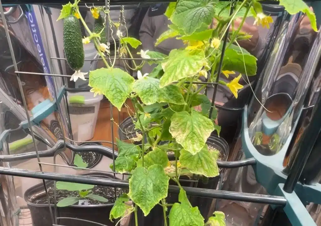 Videolla käytettiin kasvivaloja. Jenna painottaa, että kurkku tarvitsee kasvun eri vaiheissa riittävästi sekä sinisen että punaisen aallonpituuden valoa. Siksi täyden spektrin valo on käytännöllisin vaihtoehto.