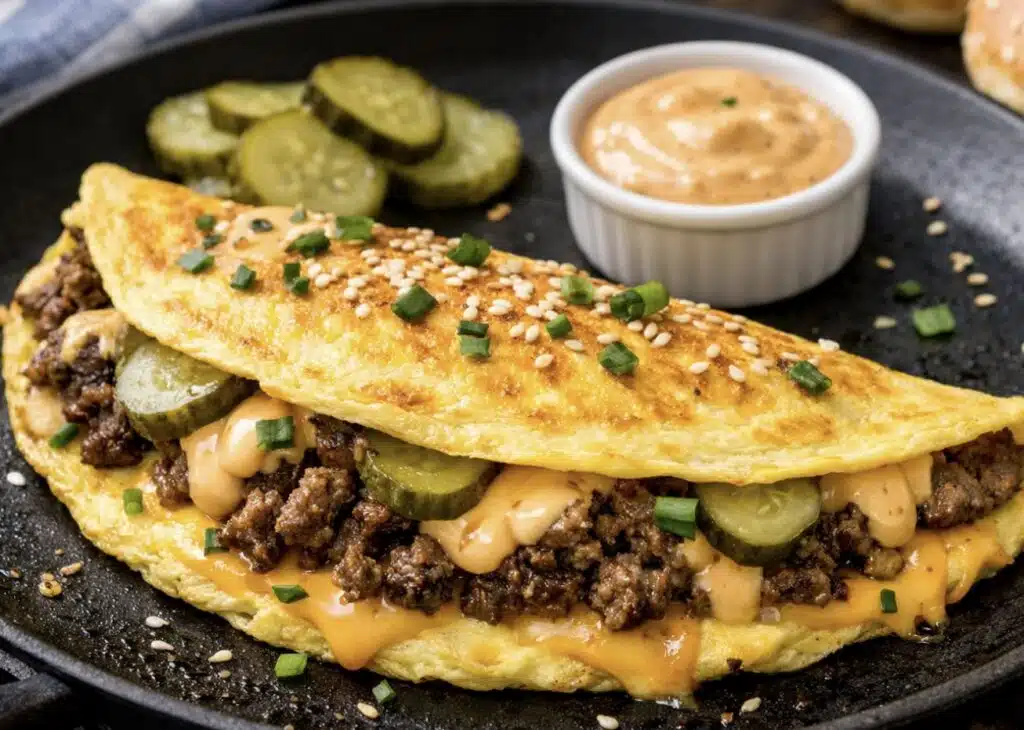 Big Mac -munakas on täydellinen resepti sinulle, joka haluat nopeasti valmistettavan ruoan, jossa on pikaruokamainen maku. Kyseessä on arkiruoka, jossa yhdistyvät halpa hinta, helppo valmistus ja ikoninen Big Mac -makumaailma. Munakas täytetään mehevällä jauhelihalla, cheddarilla, pikkukurkulla ja voit viimeistellä sen omalla Big Mac -kastikkeellasi, jonka reseptin jaoimme aiemmin.