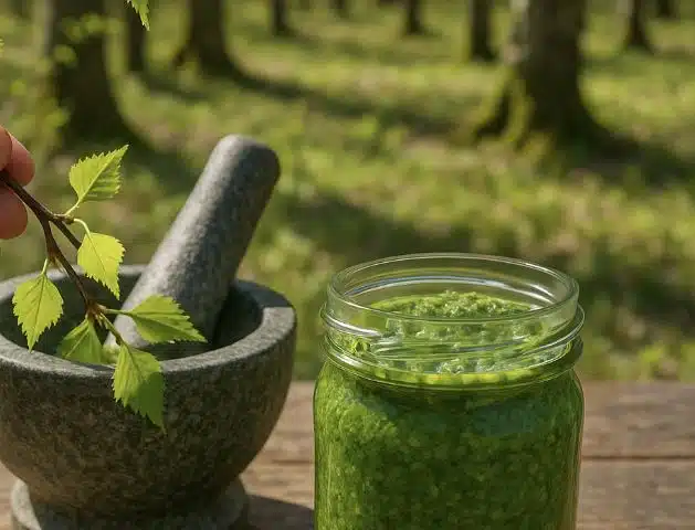 Koivun hiirenkorvapesto on villiyrttien ystävän unelma: raikas, metsäinen ja juuri sopivan pähkinäinen lisuke, joka sopii täydellisesti pastaan, leivän päälle tai vaikkapa grillatun kalan seuraksi.