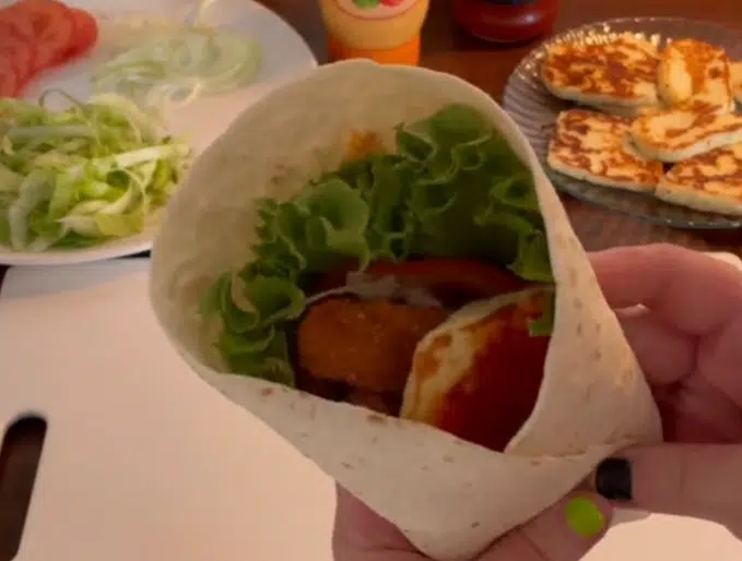 Coccishow -nimiselle TikTok -tilille jaettiin video, jossa kana-halloumitortilla valmistetaan jäljitellen kotimaisen pikaruokaketjun reseptiä.
