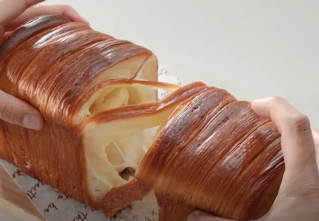 Lehtitaikinaleipä koostuu todella rapsakasta kuoresta ja mehevästä sisuksesta.