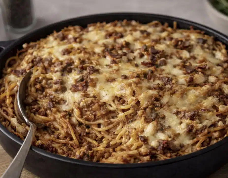 Keittiömestari Risto Mikkola näyttää mitä syntyy, kun edellispäivän jauhelihakastike ja spagetti laitetaan samaan vuokaan. Lopputulos on ruokaisa, helposti muunneltava ja takuuvarmasti koko perheen makuun.